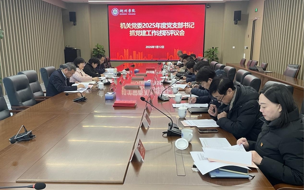 2026年1月12日,机关党委在行政楼103会议室召开2025年度党支部书记抓党建工作述职评议会。机关党委委员、各党支部书记参加,会议由机关纪委书记忻红斌主持。